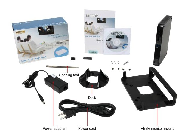 This Foxconn barebones is compatible with Ubuntu 12.04 out of the box all the way down to the wifi - but with Gigabit Ethernet, who'll be using wifi? It uses the dual-core Atom D2550 to deliver good performance for a test server or even light-duty workstation, burning only 10 watts of power. The on-board graphics have worked well in the Fourth World offices connected to a 1600x1200px monitor. While the GMA 3650 won't be able to drive Ubuntu's rich compositing options at this time, this isn't the sort of system you'd want to use for high-end gaming anyway. The graphics performance is good with the scalable Ubuntu Unity interface. As a barebones unit, this Foxconn computer lets you choose your memory and storage options. The motherboard on this barebones uses a single slot and supports up to 4 GB, very affordable at today's RAM prices. But if you're looking to trim a few dollars off your budget you'll find Ubuntu runs well with 2 GB. To keep this system as green as possible I've selected an SSD drive over a traditional magnetic drive, which also bosts performance to allow this modest system to boot from a cold start in about 10 seconds. While there are some 30 GB SSDs available for a few dollars less, the 60 GB SSD will provide more than enough room for most common web applications and the sale price brings the cost down close enough to the 30 GB models that it's well worth the extra few dollars. The barebones unit comes with an opening tool which includes a screwdriver for the four screws holding the case, and a slender wedge to gently remove the case to install the RAM and SSD. Total assembly time for this kit was less than five minutes. |